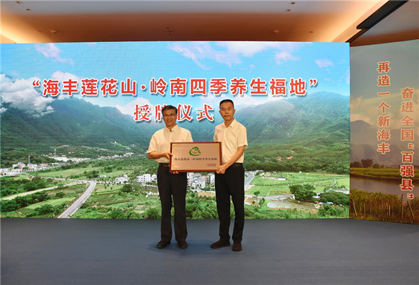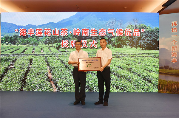 范秉康致辭表示,「海豐·中國氣候宜居縣」「海豐蓮花山·嶺南四季養生福地」「海豐蓮花山茶·嶺南生態氣候優品」3個國、省字號生態氣候標誌的授牌,是海豐縣推進生態文明建設中具有里程碑意義的一件大喜事,標誌着海豐氣候資源及生態環境宜居性得到了國家和廣東省的認可,成為具有引領示範作用的樣板之一,這既是對海豐生態文明建設的充分肯定,更是對未來工作的一種鞭策和鼓勵。接下來,海豐縣委、縣政府將以此為契機,把生態文明建設作為推動老區高質量發展的重要抓手,始終堅持生態優先、綠色發展,依託優越的氣候條件、優美的生態環境、宜居的城市空間、豐富的自然資源、厚重的歷史文化,全方位、多角度豐富「中國氣候宜居縣城」「嶺南四季養生福地」「嶺南生態氣候優品」品牌內涵,推動生態氣候資源與旅遊、康養、民宿、文化等多產業融合發展,讓海豐老區走上綠色生態可持續發展的快車道,讓老區人民充分享受到氣候優、環境美的生態紅利。(記者 余麗齡 通訊員 吳長輝 劉詩玉)