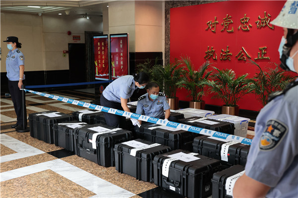 工作人員清點待銷毀毒品數量--池兆恩攝