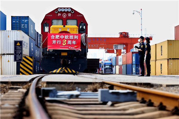 6月24日,一列滿載貨物發往歐洲地區的合肥中歐班列從合肥北站物流基地駛出。據海關統計,自2014年6月合肥中歐班列正式開行以來,累計發運中歐班列2486列,20.4萬標箱,貨值547億元,途徑17個國家,開行站點81個,建起了一條以合肥為基點的陸上絲綢之路。據了解,今年以來合肥中歐班列共計發運433列,同比增長81.2%。(解琛 孫軍)