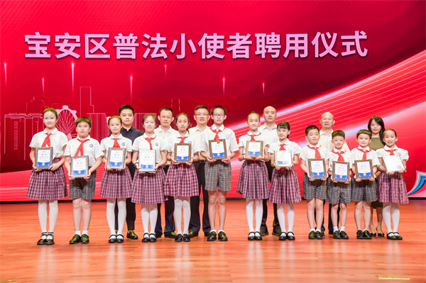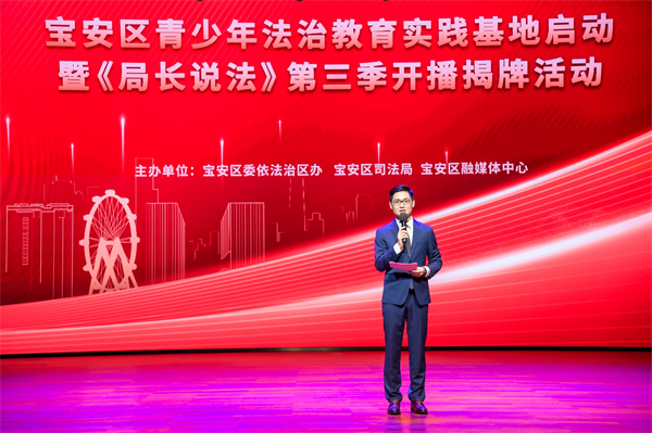 弘揚法治理念、傳播法治精神,為構建「尊法、學法、守法、用法」的法治平台,6月25日下午,深圳寶安區青少年法治教育實踐基地啟動暨《局長說法》第三季開播揭牌活動在寶安區青少年宮舉行。寶安區委常委、宣傳部部長周學良、寶安區副區長朱雲,以及寶安區相關職能部門、各街道的領導嘉賓參與活動。本次活動還為寶安區普法小使者、寶安區法治宣傳形象大使頒發了聘書。寶安區普法小使者來自於寶安各個學校,參加了普法講師培訓後正式「上崗」。寶安區法治宣傳形象大使由寶安區融媒體中心主持人姜賀擔任,姜賀主持法治節目多年,並獲得省市多項專業獎項。接下來肩負法治宣傳使命的使者們,將傳播法治種子、讓法治理念潤物細無聲、傳遍千家萬戶。