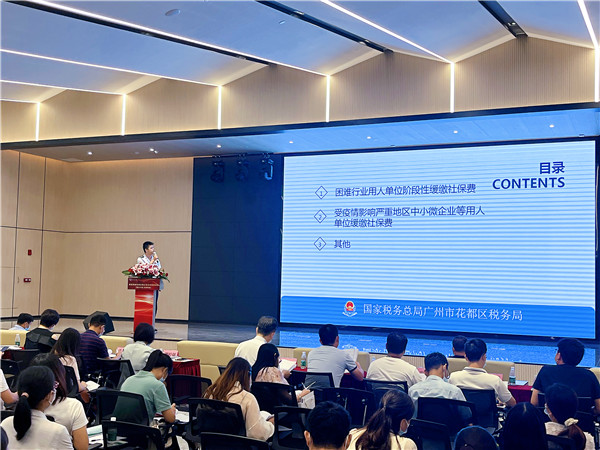 花都區稅務局相負責同志講解了廣東省擴大階段性緩繳社會保險費政策,重點明確了社保緩繳的對象範圍、期限和流程。區發展改革局相關負責同志解讀了《廣州市關於支持社會力量參與重點領域建設的指導意見》,重點講解新政策對於基礎設施REITs產業、新基建、產業母基金、製造業要素保障和更高水平對外開放等五方面的創新亮點。