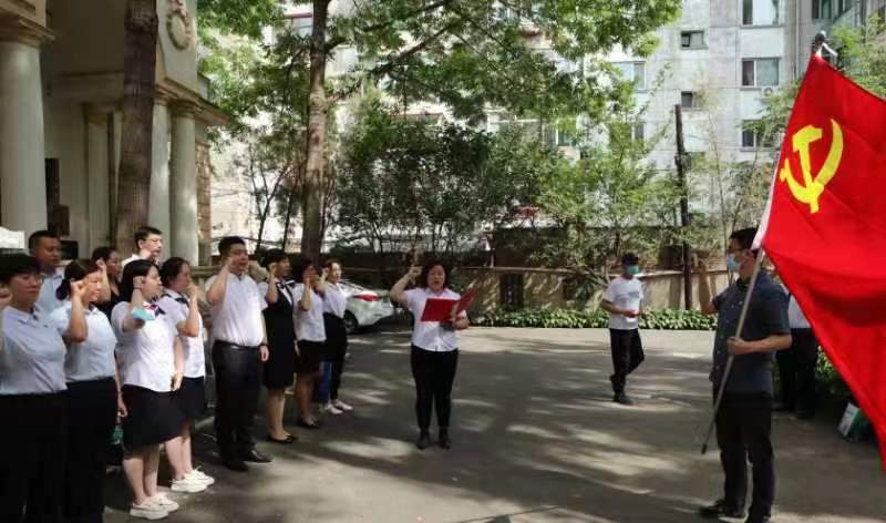 黨旗下,所有黨員莊嚴肅立,由劉書記帶領黨員重溫入黨誓詞,駐街單位農商銀行職員代表全體總行、分行領導及職工唱響了歌曲《明天會更好》,最後鐵嶺社區幹部帶領所有參加活動人員共同合唱歌曲《萬疆》,「祝願我們的祖國我們的黨繁榮昌盛,山河無恙,人間皆安。」 (朱國棟 張曉磊)