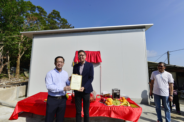 【香港商報网訊】記者周駿報道:「天災無情,人間有情」!9月16日,超級颱風「山竹」恣肆香港,沙頭角的西流江漁村8間寮屋被強颱風摧毀,同區吉澳、鴨洲村屋及傢俬電器亦有不同程度損毀。12月21日,曾呼籲災後重建捐款的鄉議局主席劉業強率領該局成員參加西流江村寮屋重建揭幕儀式,並向出席儀式的北區民政助理專員、地政總署部門官員贈送感謝狀,以感謝政府部門全力協調重建的審批工作。同日,吉澳20多名受災村民亦獲發放援助金。