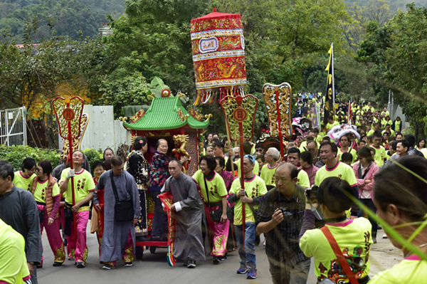 六年一屆的沙江圍太平清醮於本月4日至7日舉行,醮會除了令在外遊子返鄉敘情誼,也讓他們與鄉親欣賞難得一見的舞東莞麒麟。很久之前與天水圍一水之隔的沙江圍,現在是新界西一條多姓的圍頭村落。據說數百年前村民從海中撈得一貌似天后的石像,故築壇供奉,這是今日沙江天后廟的前身,後頗為靈驗的沙江媽之名不脛而走信眾日多,結果產生了沙江圍太平清醮。今屆醮會首天,村民組成二三百人的隊伍徒步往沙江廟迎請天后到村的醮棚供人參拜。數天的醮會,亦有醒獅上高竿、疊羅漢、金龍在爆竹煙火間舞動,一時間鑼聲鼓聲爆竹聲震耳欲聾,萬人空巷熱鬧非常。