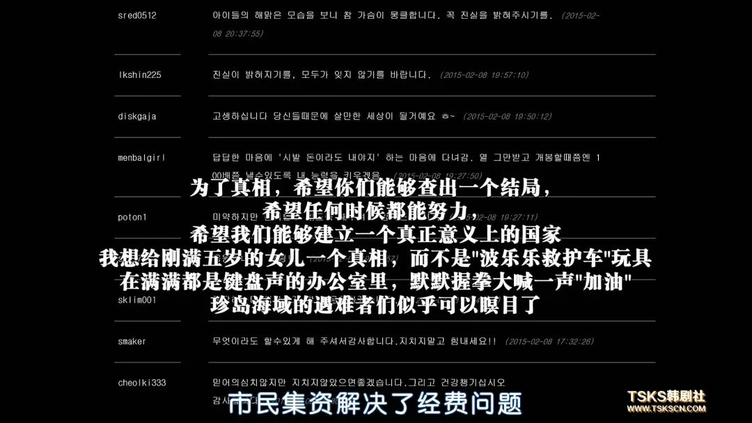 多说一句,这不纪录片的意义非常大,当时韩国封杀了9000多名文化人,但不断追寻真理的媒体人,他们为这透明,民主,正义的国家的形成而进行了不懈的努力,凭借个人力量去正面刚政府的勇气,很令人钦佩。