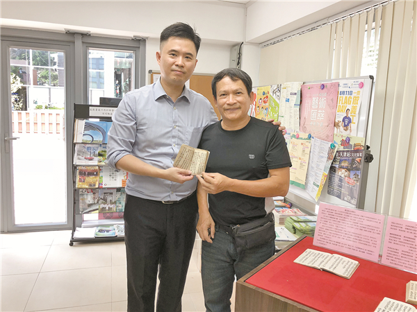 火炭村村代表鄭志興(右)保存了一套祖傳手抄本《竹枝詞》,現珍藏在沙田鄉委會讓公眾欣賞。