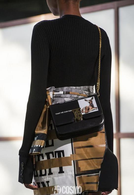 这一季不少品牌都开始换了新LOGO或标识。BURBERRY最新发布的包袋中,包上的金属logo扣很是吸睛。是Riccardo Tisci接任创意总监后与平面设计师Peter Saville一起创作的新logo,致敬品牌创办人Thomas Burberry。