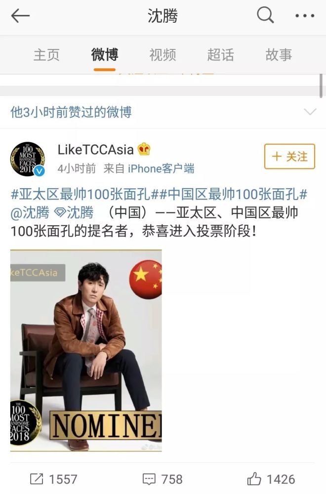 最近,他还入围了#亚太区最帅100张面孔#!!!对此他本人也很是自信,不仅“悄咪咪的”在原微博下点了个赞