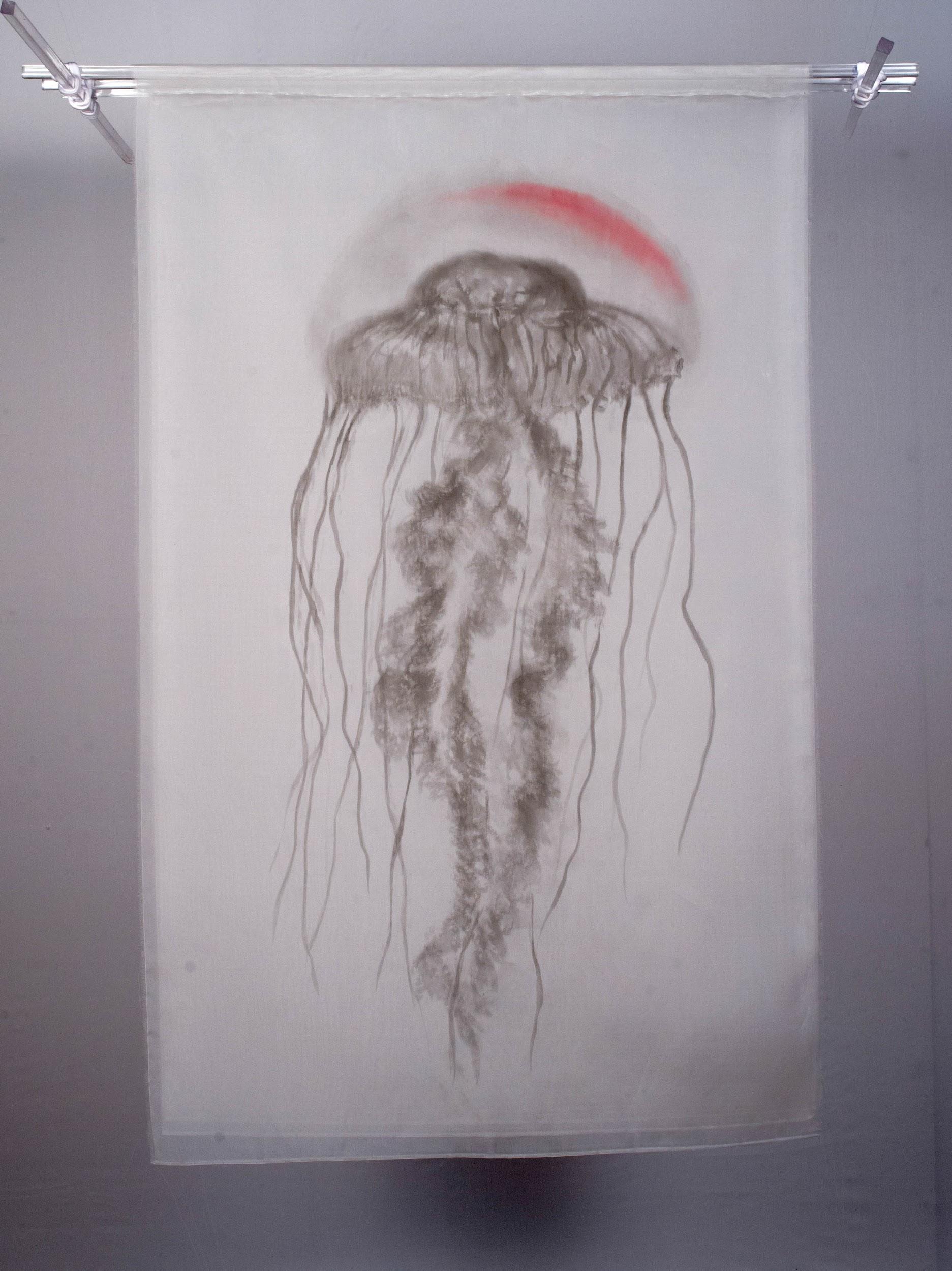 © 菊池あをみ, 漂浮, 2016, 三层丝绸, 墨水, 酸性染料, 101.5 × 66 cm
