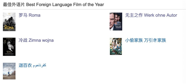 不过,人家的志向可是最佳影片,外语片基本是顺手拿的。