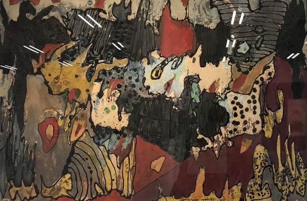 陈福善转向抽象是比较“被动的”。从60年代告别现实主义以后,他再也没有创作过写实的绘画。面向抽象的转折使他最后走向了对于潜意识的挖掘和表达。我们知道,梦中的东西恰恰才是最真实的流露,外在附加的一切:教育、他人的影响、自己的逻辑思维——梦排除了所有这一切,你的经验、体验,通过一种潜意识反映出来,陈福善将这种东西反映在画上,而这正是香港当时的光怪陆离的景象。比如展览中成熟期部分的“香港众生相”和“幻想家园”反映的恰恰是五六十年代出现的现象。