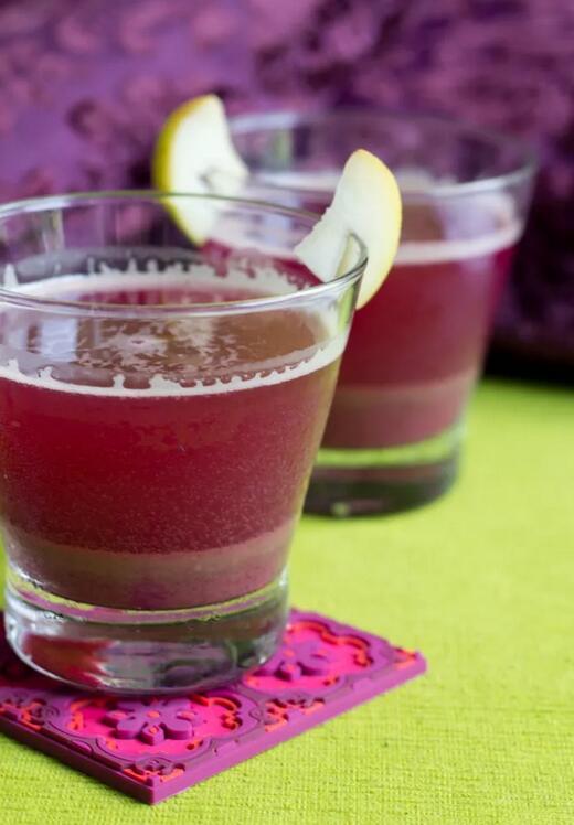 紅菜頭含有天然色素,榨出來的汁呈玫瑰紅色,相當誘人。