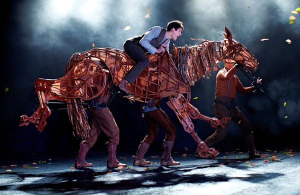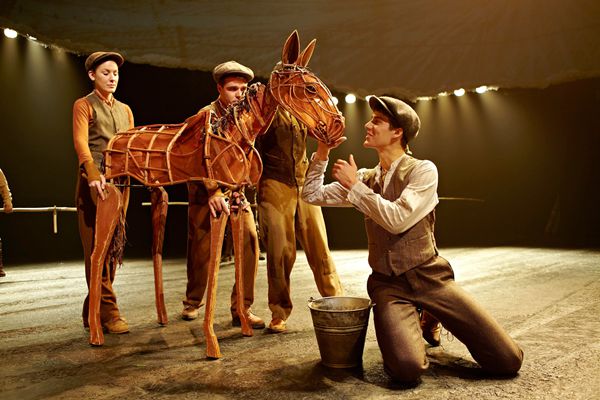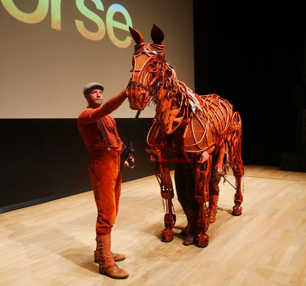 據木偶導演Gareth Aled介紹,劇中使用了約23隻木偶,大至坦克,小至鳥雀,骨架全由南非木偶戲團Handspring Puppet Company製作。舞台上的Joey分為頭、身、尾三部分,由三位木偶師同時操控。其中一人站於馬前,負責面部表情和動作,例如眨眼、開口和擺頭,另外兩人則要藏身於馬身內,背上馬偶的骨架,分別掌管前肢、後肢與馬尾。他們身着近似馬匹顏色的戲服,生動演繹馬的動作情態,彷彿舞台上有一匹真實的馬在站立、行走和奔跑,隨?注意力的慢慢投入,觀眾渾然忘記了木偶師的存在。動作以外,馬匹的呼吸和嘶嚎聲也由三人發出,效果逼真。