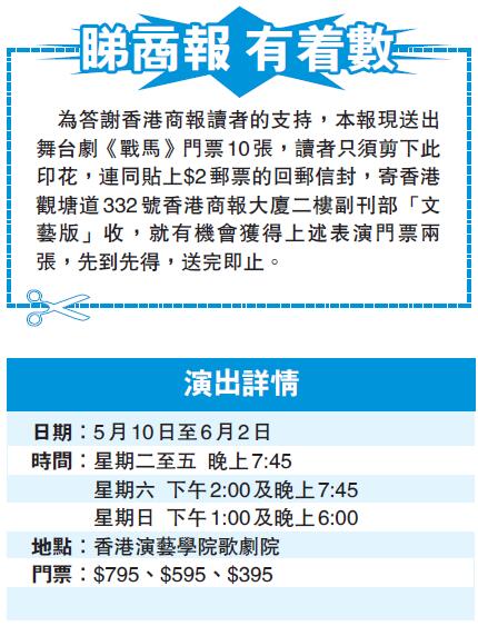 英國國家劇院製作的舞台劇《戰馬》將於5月28日至6月2日假香港演藝學院歌劇院公演。