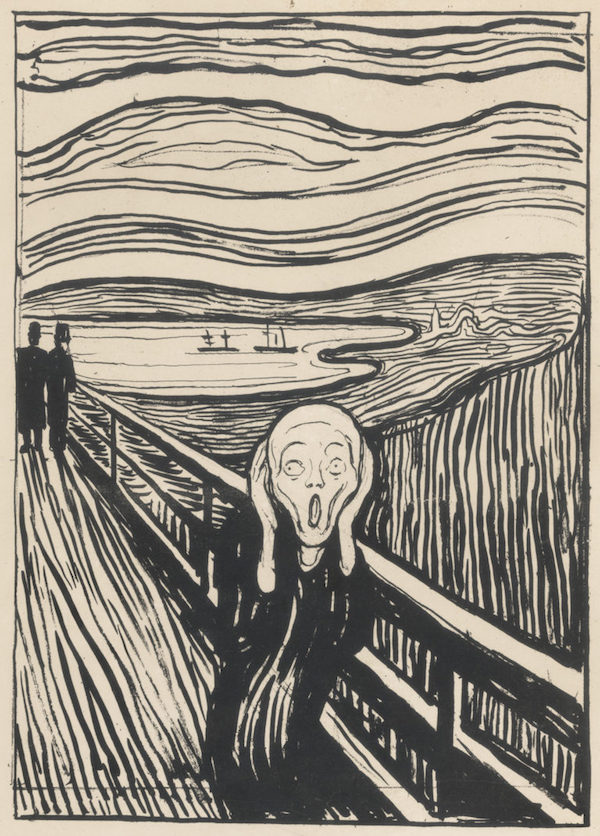 爱德华·蒙克,《呐喊》,石版印刷,创作于1895年。