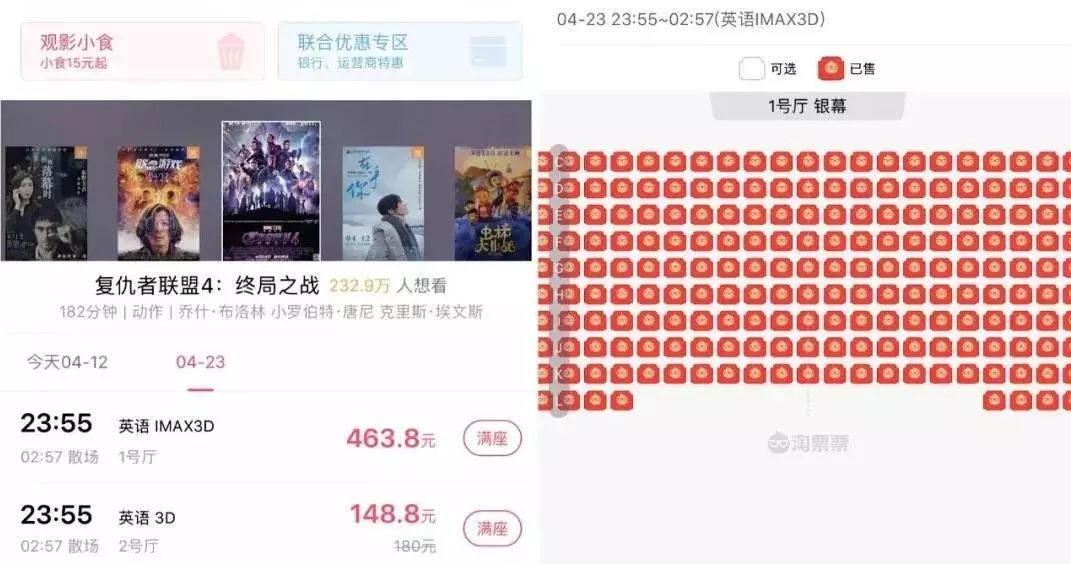 最近《复联4》宣布预售已经破亿,奇高的票价和各大影院的满场盛况简直史无前例。