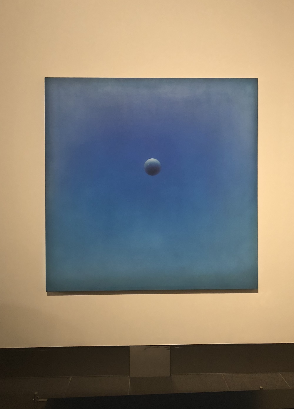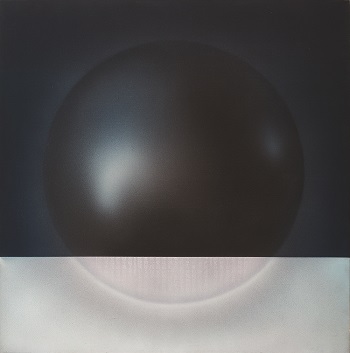 「光」是虛無縹緲,摸不到的東西,要將「光」畫好,色彩必須運用得當。在展廳「意欲淵渟」展示的《卿卿》,顯示韓志勳對色彩的運用已經達到登峰造極的境界,韓志勳太太蔡仞姿對筆者表示:「在《卿卿》裏面可以看到各種顏色,不過就是沒有黑色。」不靠黑色就能繪畫灰色,若對色彩掌握不夠熟稔,便會予人顏色「不乾淨」之感。《未央》則是繪畫了球體,整體以藍色為主,定眼一看,讓人覺得球體恍如有律動地移動,這是因為藝術家用了不同手法展現層次感,即使只有藍色,也用上不同深淺而細膩的藍。