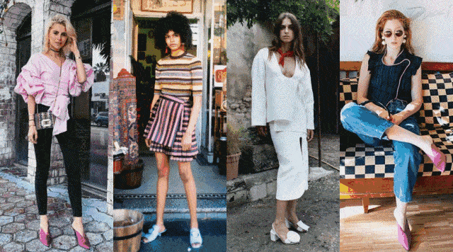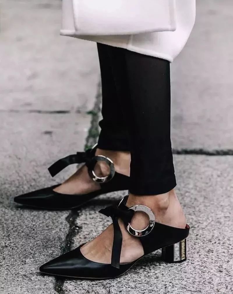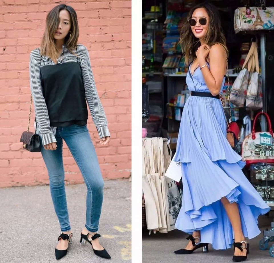 职场的连衣裙,休闲的牛仔裤,都能轻松和尖头高跟穆勒鞋组成CP。