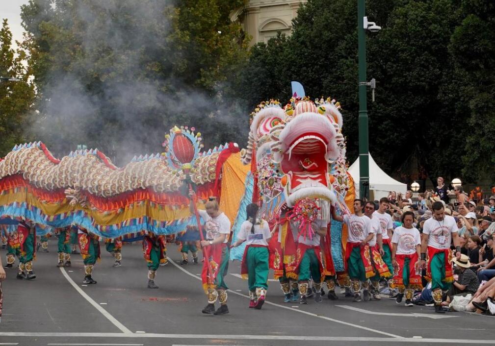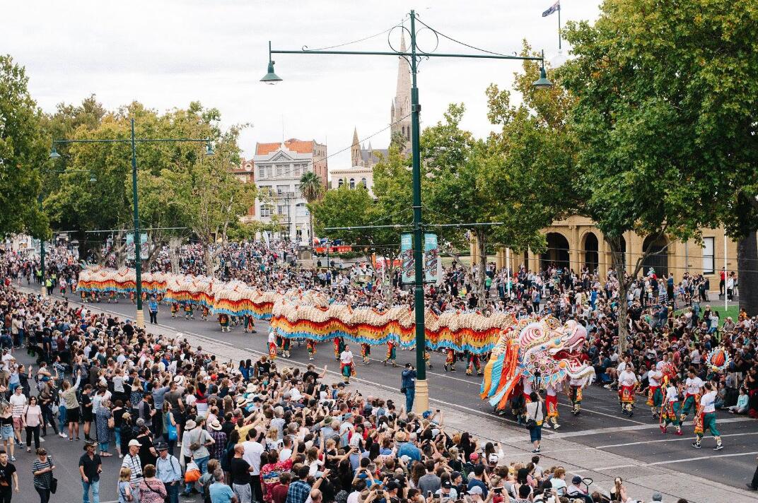 本迪戈市數萬市民及遊客,圍觀港產大金龍在復活節慶典中巡遊。