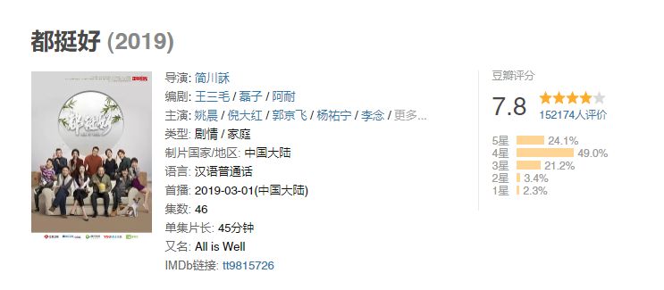 年初电视剧《都挺好》刷爆朋友圈,拿下豆瓣7.8的高分。