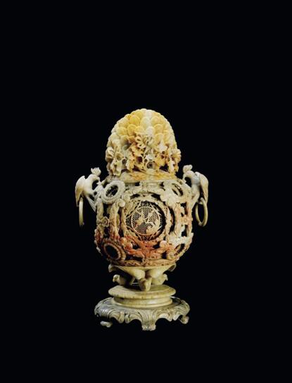 青田灯光冻古兽博古纹纽章