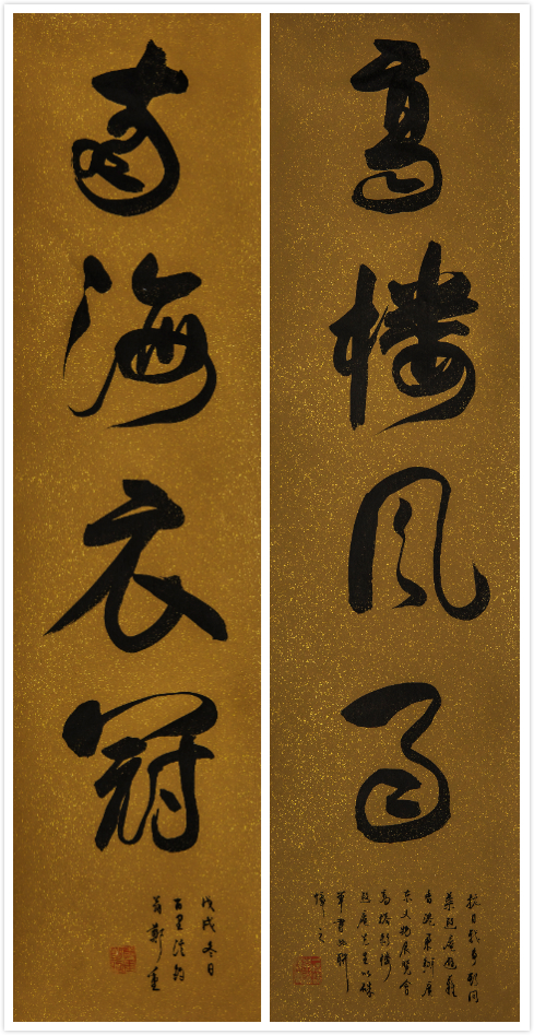 鄭重書法作品《對聯:高樓風雨 南海衣冠》。