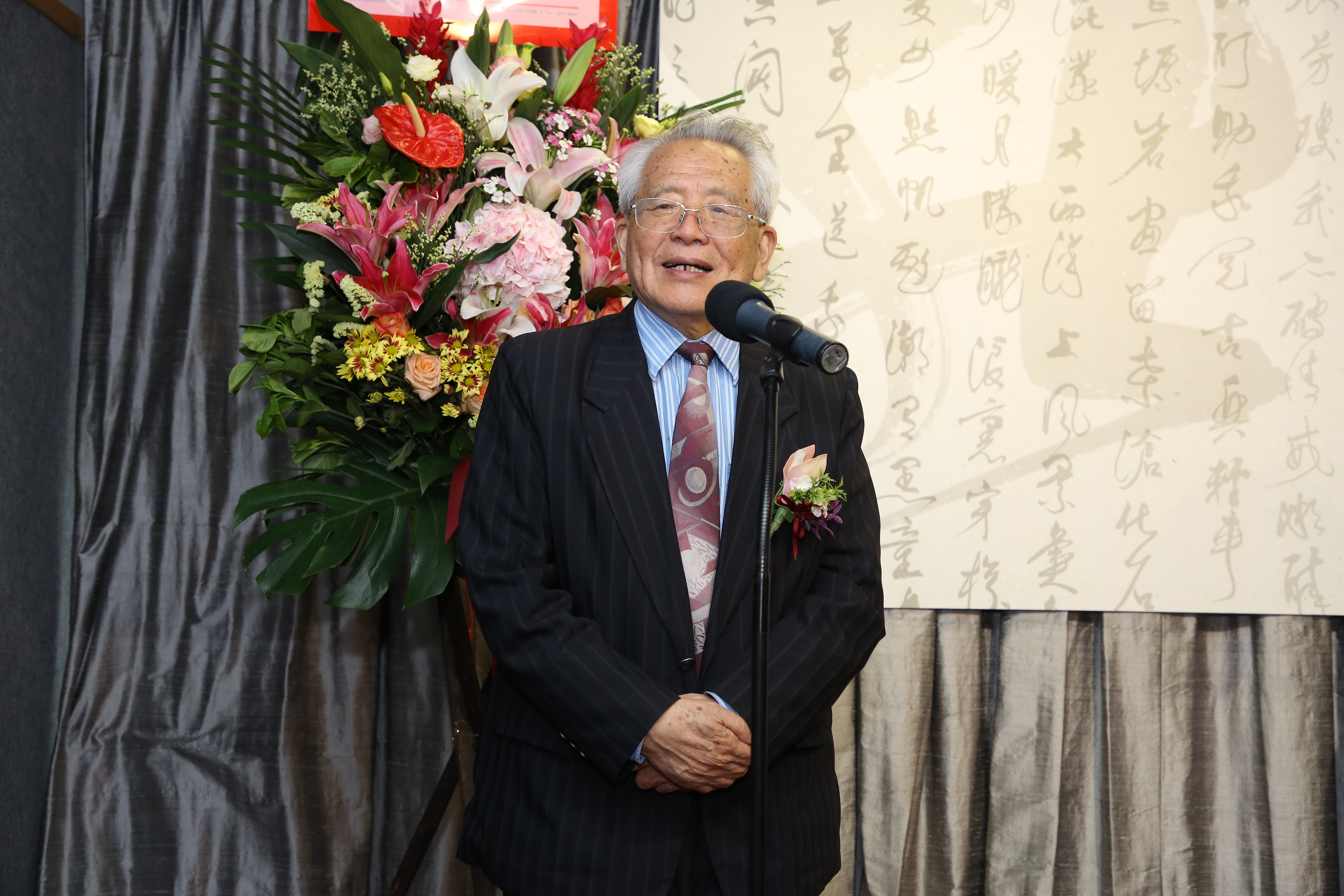 集古齋董事總經理趙東曉(左一)、聯合出版副總裁吳靜怡(左四)、香港中文大學原校長金耀基(左五)及書法家鄭重(左六)等嘉賓出席展覽的開幕儀式。