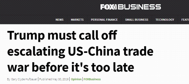 在这篇题为“特朗普必须在为时已晚之前停止不断升级的美中贸易战”的文中,福克斯新闻网对不断升级的贸易战中,美国可能或正在受到的影响进行分析,呼吁特朗普应“通过一项全面协议,鼓励与中国进行自由公平的贸易”,而不是进行“新一轮的关税攻击”。
