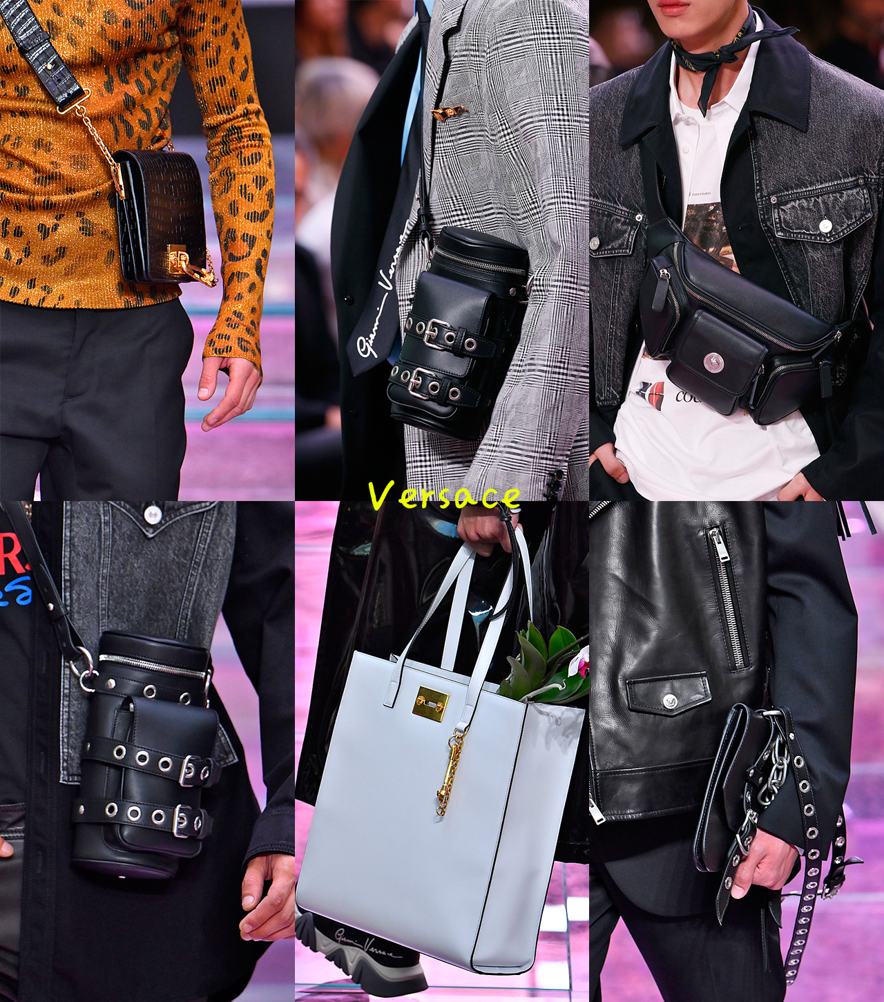 Versace本季出的男包比较多,款式也很新颖,不拘泥于传统的男包,圆筒小挎包、大型腰包、以及金属感的手包等,都在原来的款式上有所创新,充满酷感又不失潮范儿。