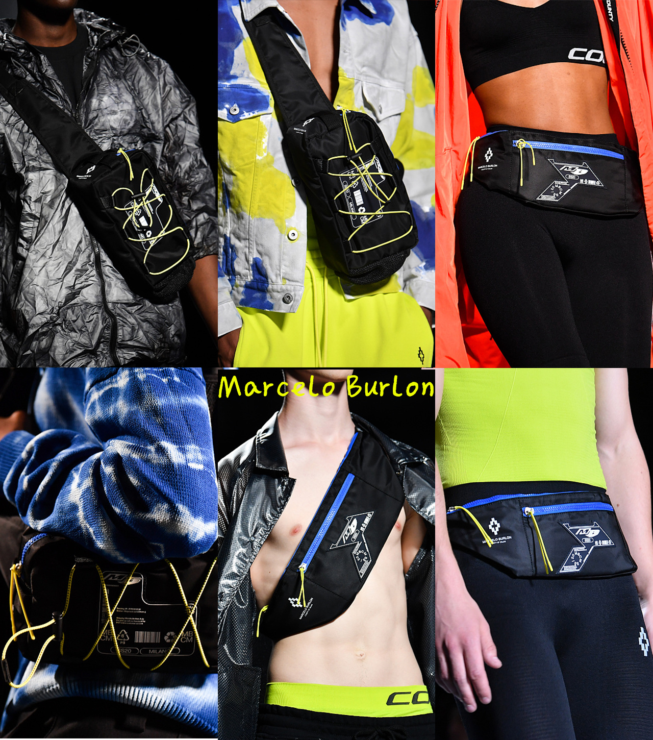 Marcelo Burlon主打运动style,无论是服装还是包包,都有很多饱和度很高的荧光色装饰,用荧光色块点缀也是近两年很流行的手法之一,走运动风的潮男们了解一下?