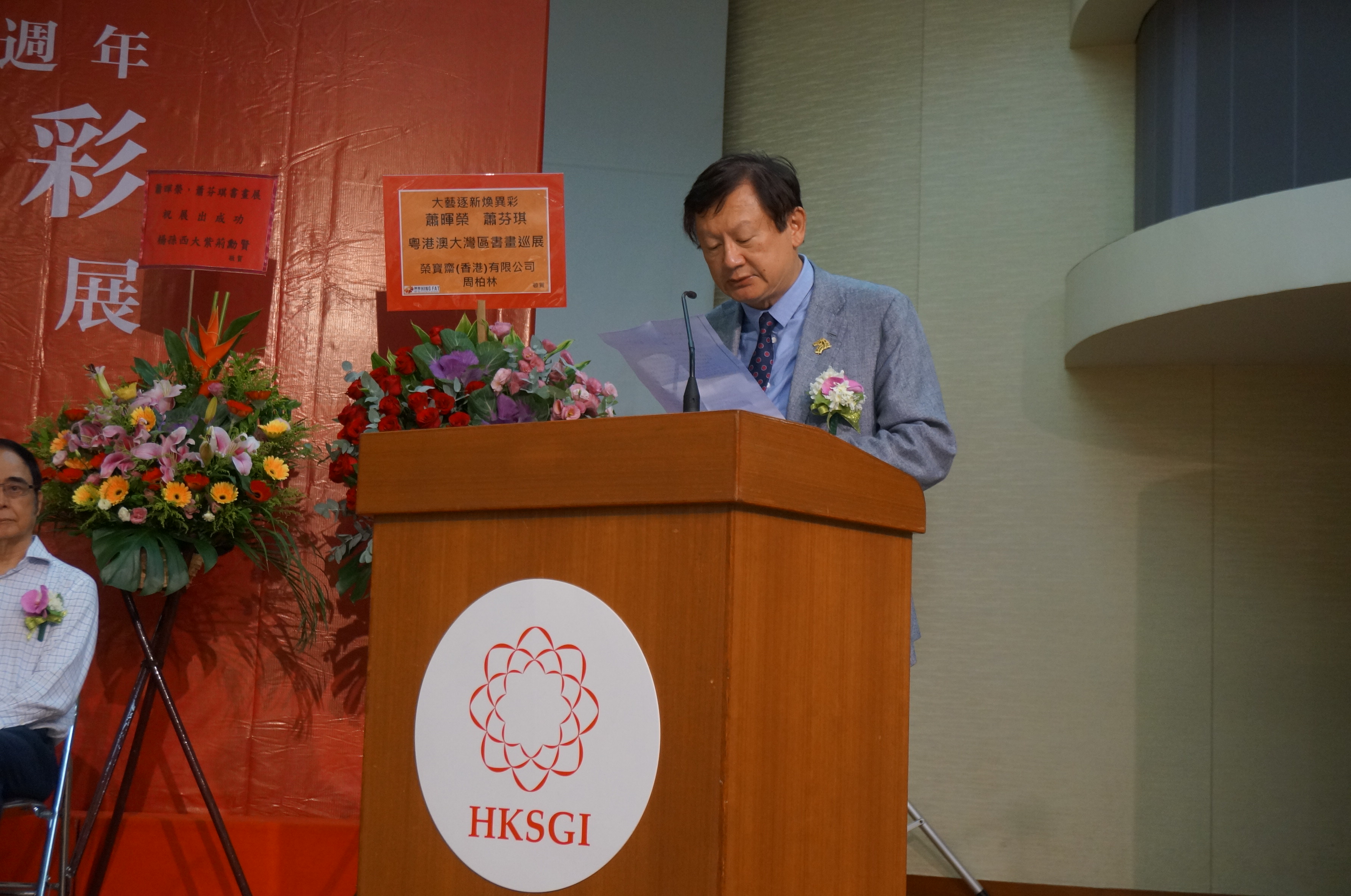 為慶祝中華人民共和國成立七十周年、粵港澳大灣區發展戰略實施、香港回歸祖國二十二周年,由汕頭海外聯誼會、江蘇省政協港澳台僑(外事)委員會、香港紫荊雜誌社等承辦的「大藝逐新煥異彩—蕭暉榮蕭芬琪粵港澳大灣區書畫巡展」於昨日下午在香港國際創價學會舉行首站開幕儀式。此次展覽展期至7月6日,展出蕭暉榮蕭芬琪父女一系列古文字書法以及當代荷塘油畫。