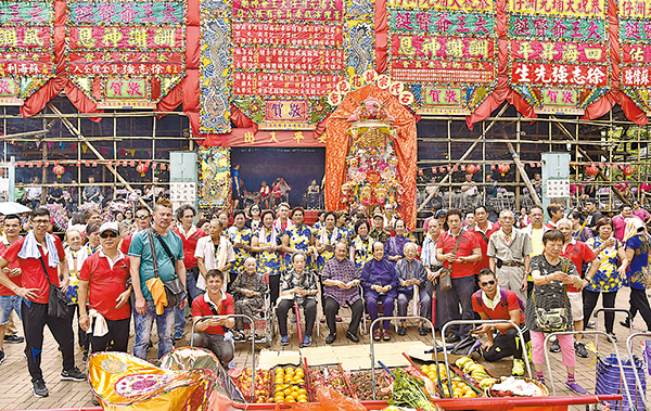 蘇姓族人則以跳龍船舞來賀誕,此外還有醒獅花炮。婦女們面帶笑容穿起鑲了闊邊的大襟衫,頭戴珠鏈彩帽,隨鑼鼓節奏起舞,划動手中彩色木槳如小艇般在街道慢慢前進,引來不少市民善信圍觀,形成陸上行舟的進香圖!從前因浮家舟楫,如有嫁娶,新郎的女性家屬以小艇為龍船來接載新人,移居岸上後則跳龍船舞來代替之。