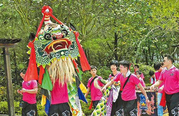 鶴佬的武術團體以獨角麒麟參神及表演,它與客家麒麟造型十分不同,其頭大髯賁面闊如盤,頭頂獨豎大角,身形長大,隨音樂節拍的變化動作大起大落,左右翻騰顯得機靈敏捷勇武非常,不少途人善信眼前一亮紛紛駐足圍觀。
