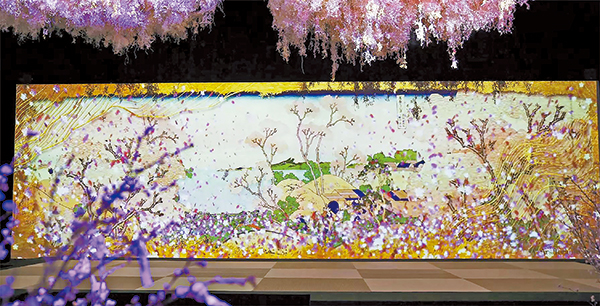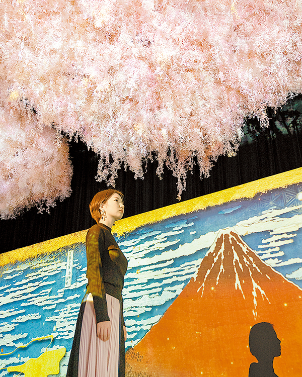 當中「360°Around Mt. Fuji ~NAKED meets 北齋~」互動藝術展區將以數碼科技及投影技術重現葛飾北齋的《富嶽三十六景》四大畫作,以呈現北齋浮世繪畫作「既可宏觀看布局,也能微觀看人情」之精髓。包括:最為人津津樂道、又名「赤富士」的《凱風快晴》,以宏觀的視野,直接呈現富士山磅礴而神聖的氣派;還有以觀景的人及櫻花為題的《東都淺草本願寺》、《五百羅漢寺榮螺堂》和《東海道品川御殿山不二》三幅畫作,則從微觀的角度出發,引領市民走到不同的賞山場景,或遠或近、或高或低,從不同的位置和方向,去觀賞富士山的多姿美貌。作品以「一鏡到底、360度攝影機視角」之創作手法,透過一連串影像呈現富士山於不同角度和色彩下的360度景致及山色之變化;加上場景將隨?繁花盛開或微風吹拂而配上的特別音效,讓觀眾恍如身臨其境、「走進」富士山體驗日本第一峰,以不一樣的角度感受葛飾北齋筆下《富嶽三十六景》渾然天成的畫功。
