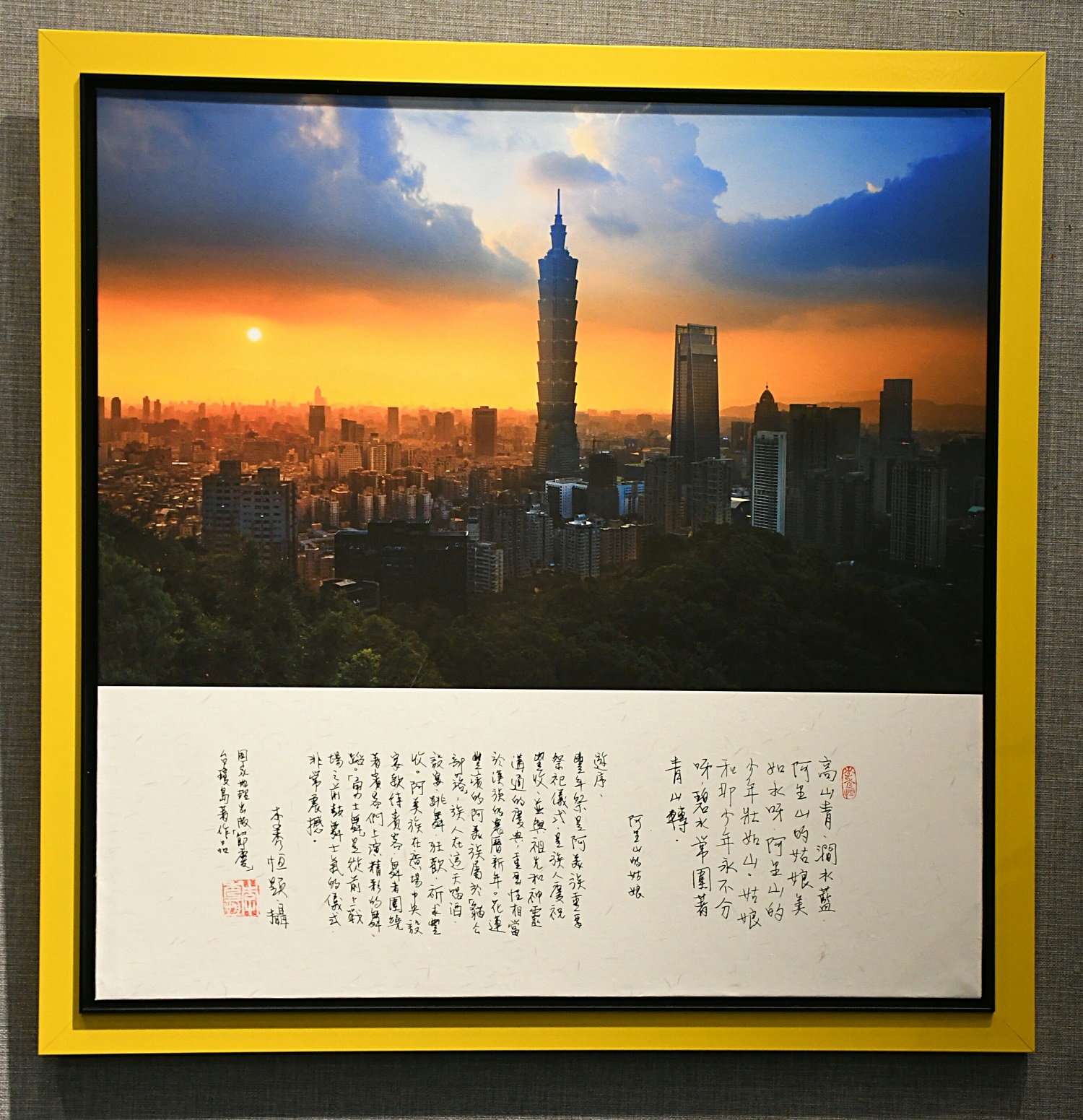 展覽現場可見李秀恒的每一幅攝影作品都附隨書法展出。(馮瀚文攝)
