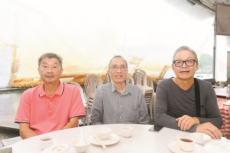 ▲陳連偉(中)與首副主席黃敬全(右)等鄉委於早、午茶時間與島民接觸,聽取意見。 記者 蔡啟文攝