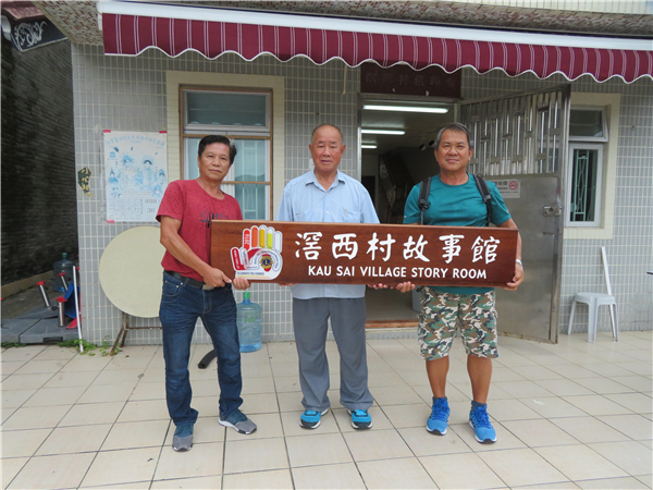 滘西洲最為人熟悉的,是1995年啟用的公眾高爾夫球場,但在南部擁有200多年歷史的滘西村,相信很少人到訪過。這村最初是陸上客家人聚居,1952年遷往白沙灣後,原在岸邊艇上居住的水上人陸續到島上定居。記者於本月上旬,在西貢碼頭乘快艇大約15分鐘便到滘西村碼頭。一同登島的,有年屆83歲的村長羅有妹,為故事館出力甚多的村民馬樹根,另一些村民及漁護署的視察人員。他們帶同一塊重量不輕、書有「滘西村故事館 KAU SAI VILLAGE STORY ROOM」的木匾,準備不久掛上鄉公所門上。這木匾象徵意義十足,村民等了它3年。