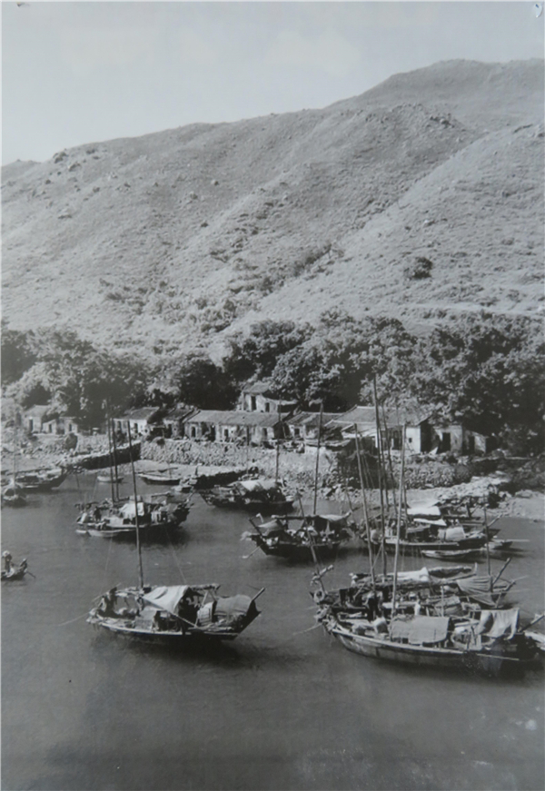 滘西村上世紀50、60年代面貌(下圖,滘西村村民提供), 與現在有很大分別(上圖 ,香港政府圖片), 捕魚艇大幅減少,村民只期望不能泊大船的碼頭盡早重建。