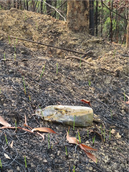 近年很多山友都會在山野進行「清徑」,目的是希望山徑經過清理後變得乾淨,減少成為燃料的機會,同時亦提醒自己不要將垃圾留在郊野。記者亦在這段路進行清徑,帶備手套、鉗及垃圾袋。或許是鹿巢山山徑較少垃圾,又或是大火已將垃圾燒得無影無蹤,沿途垃圾很少,只發現膠樽、太陽油及鋁罐各一,另有相信是大火之後才遺下的紙巾。