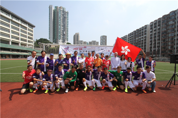 2018年的四地足球比賽,來自香港、澳門、上海、寧夏四地的中學足球隊青少年球員與張廣勇及嘉賓合照。