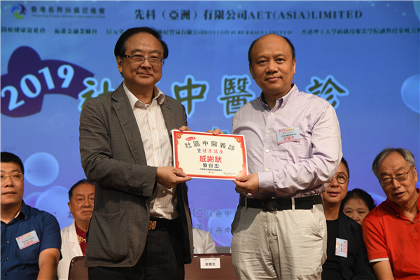 「2019全港義工服務日之中醫義診」,張廣勇與在場者合照。
