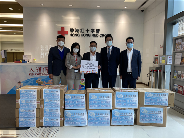 3月6日,向香港紅十字會捐贈12000個口罩及2000支消毒噴霧。