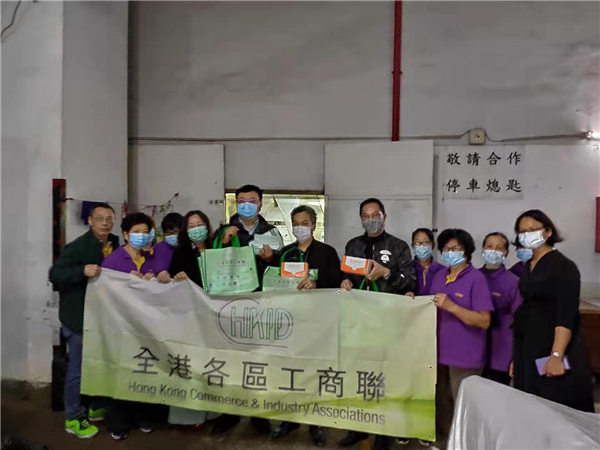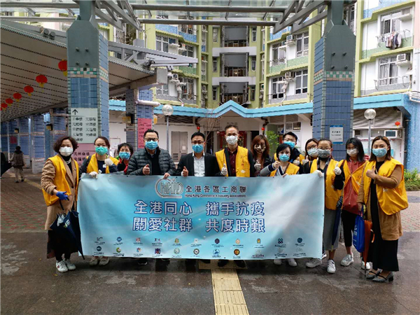 2月12日,攜手香港清潔商會及香港仔田灣科爾環衛有限公司向前線員工派發口罩等抗疫物資。