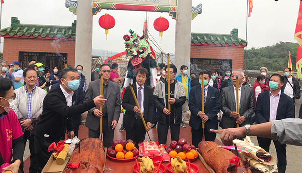 壓醮委員會代表在塔門天后古廟前上香。