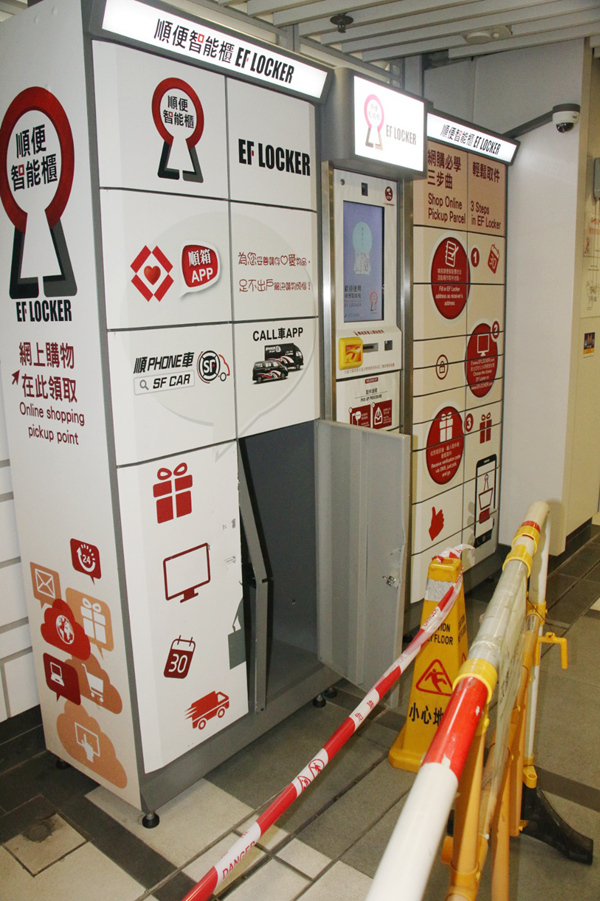 涉事速遞智能櫃位於商場走廊,設有多個不同體積的儲物櫃、包括涉事的「特大」格,體積為87乘47厘米、深度42厘米,儲放不同大小的快遞包裹,供買家自行提貨。