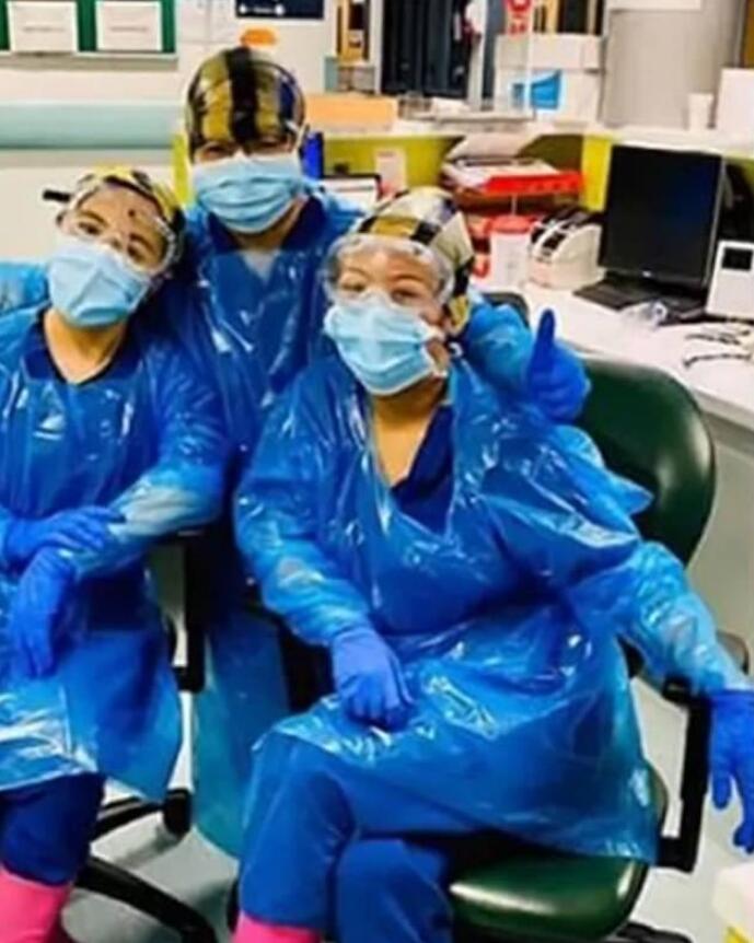 据报道,今年3月,由于缺乏个人防护装备,英国哈罗市北威克公园医院的前线医务人员被迫将医疗废物袋套在头上和脚上。据一位资深医院消息人士称,上周,照片中的三名护士均被诊断出感染了新冠肺炎。