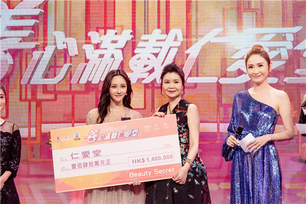 鄭慧賢代表Beauty Secret捐贈支票予善心滿載仁愛堂,並由仁愛堂副主席熊敏代收。