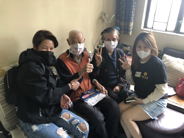 集團員工上門向基層長者派發口罩等防疫物質。