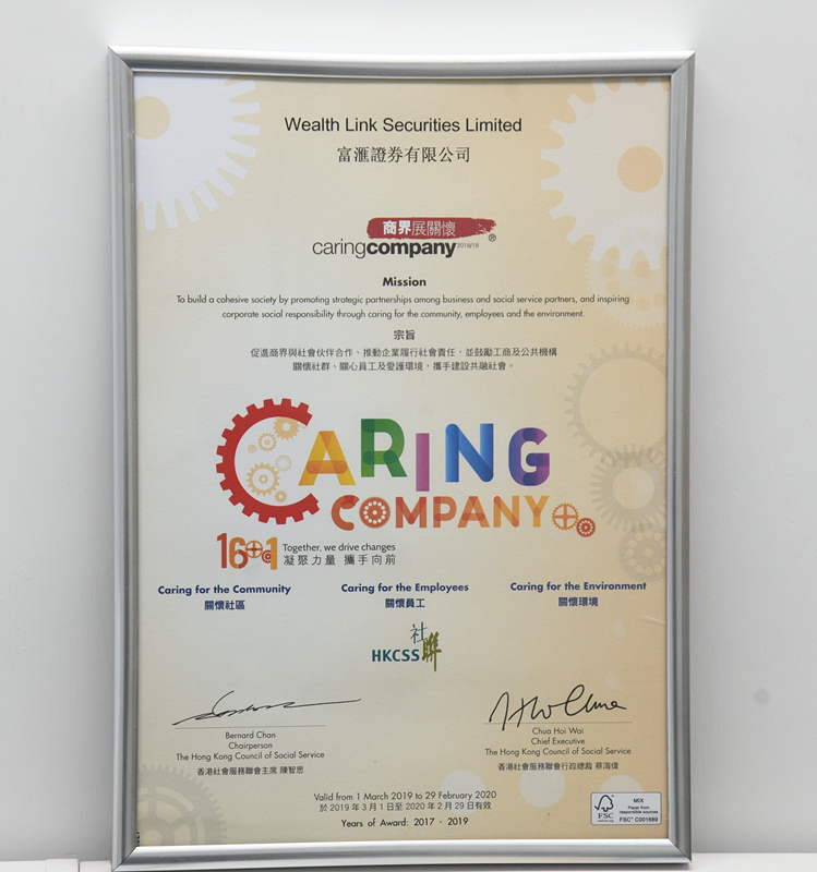 富滙證券在張貽輝帶領下取得多項慈善企業殊榮。