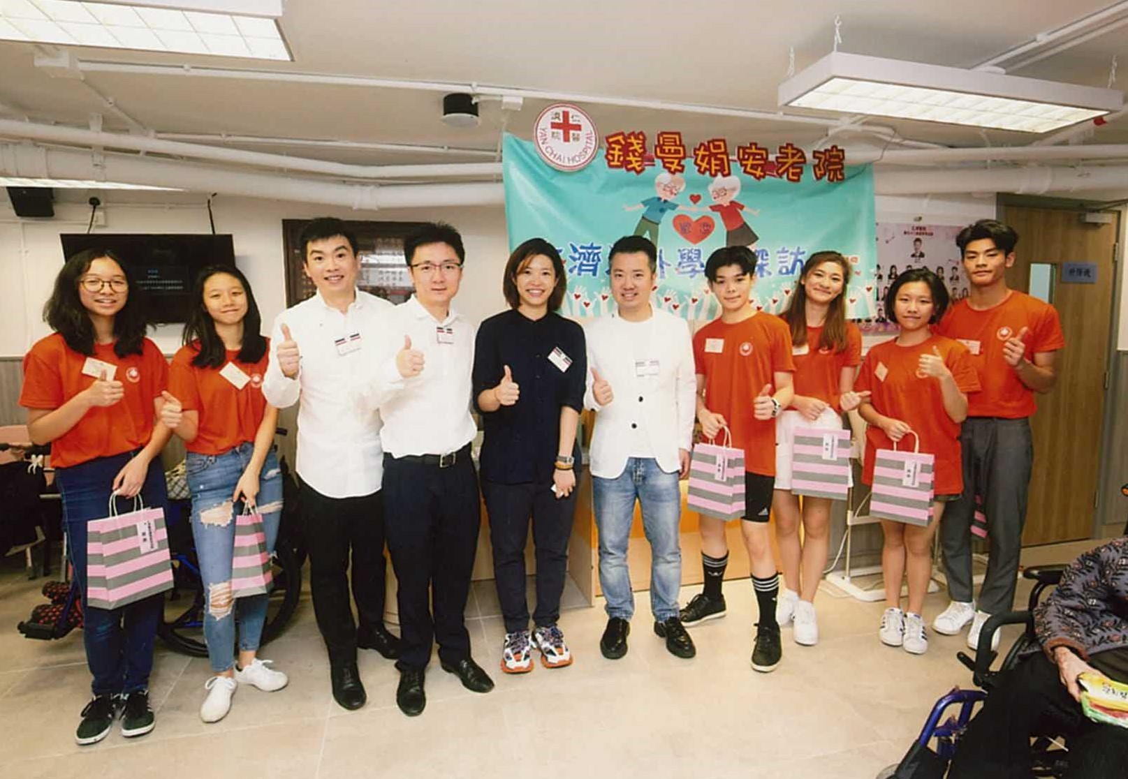 張貽輝(左三)經常參與仁濟醫院舉辦的探訪老人院活動。